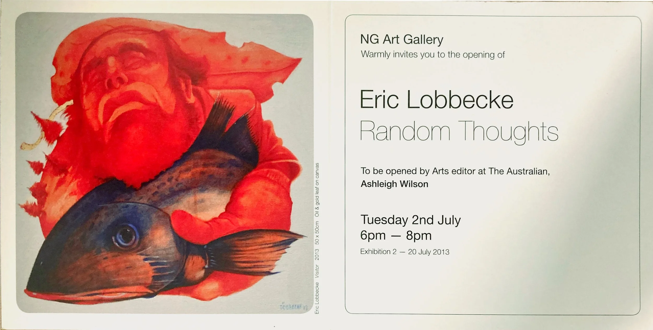 ERIC LOBBECKE’S works are a continuation of his fine art oeuvre which he has been showing and developing for many years away from his daily work on The Australian Newspaper.